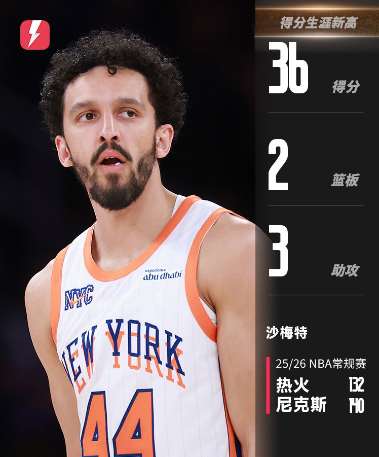 本场竞赛,尼克斯两名后备队员球员沙梅特与克拉克森发挥出色,联手成为球队取胜的关键。沙梅特迎来职业生涯高光之夜,出战37分钟,19投12中,高效砍下36分,创下本赛季后备队员球员单场最高得分纪录。克拉克森同样表现不俗,后备队员登场33分钟,13投6中,贡献24分、5个抢篮板和3次助攻。