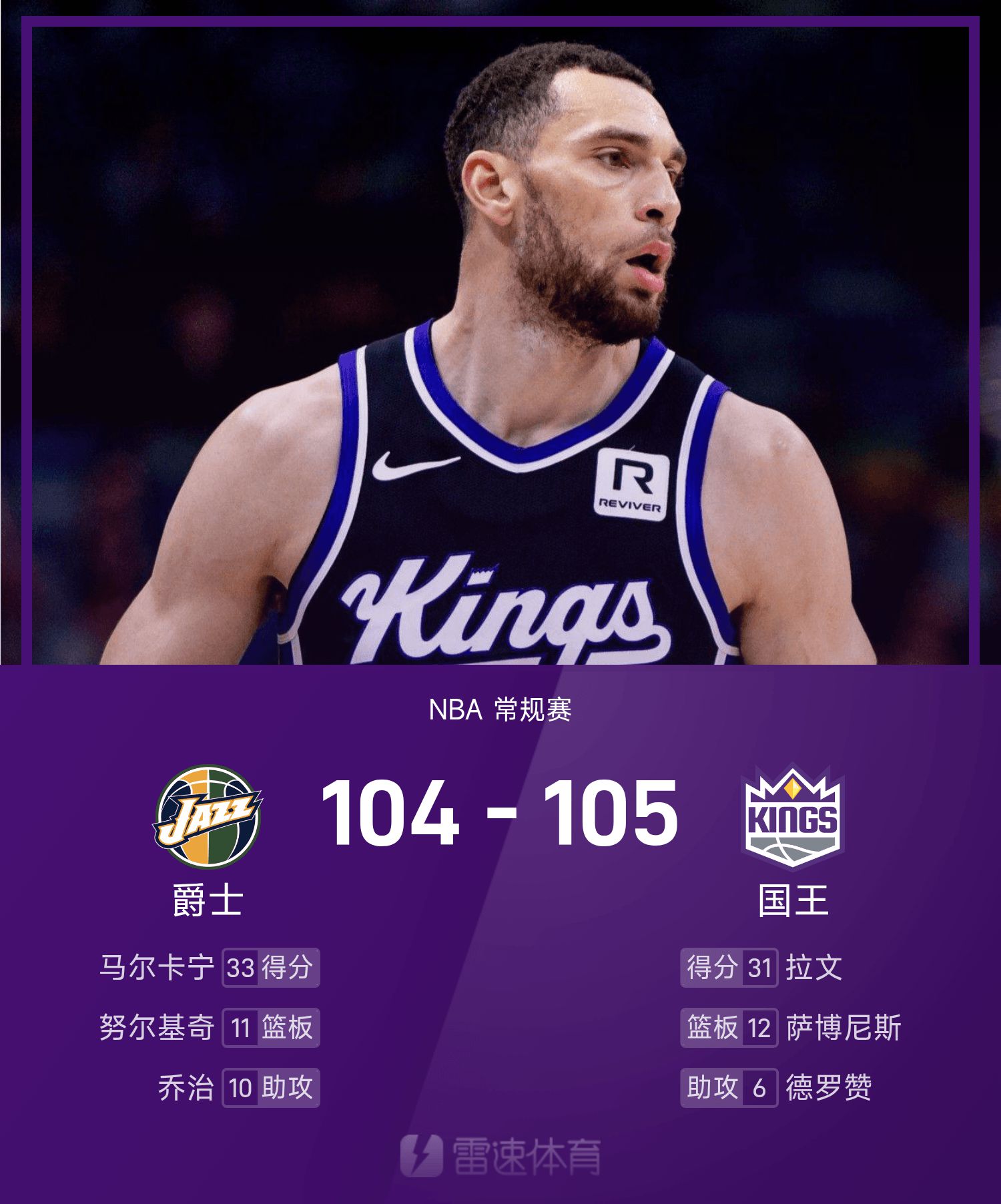 拉文18投10中,得到31分2抢篮板2助攻。