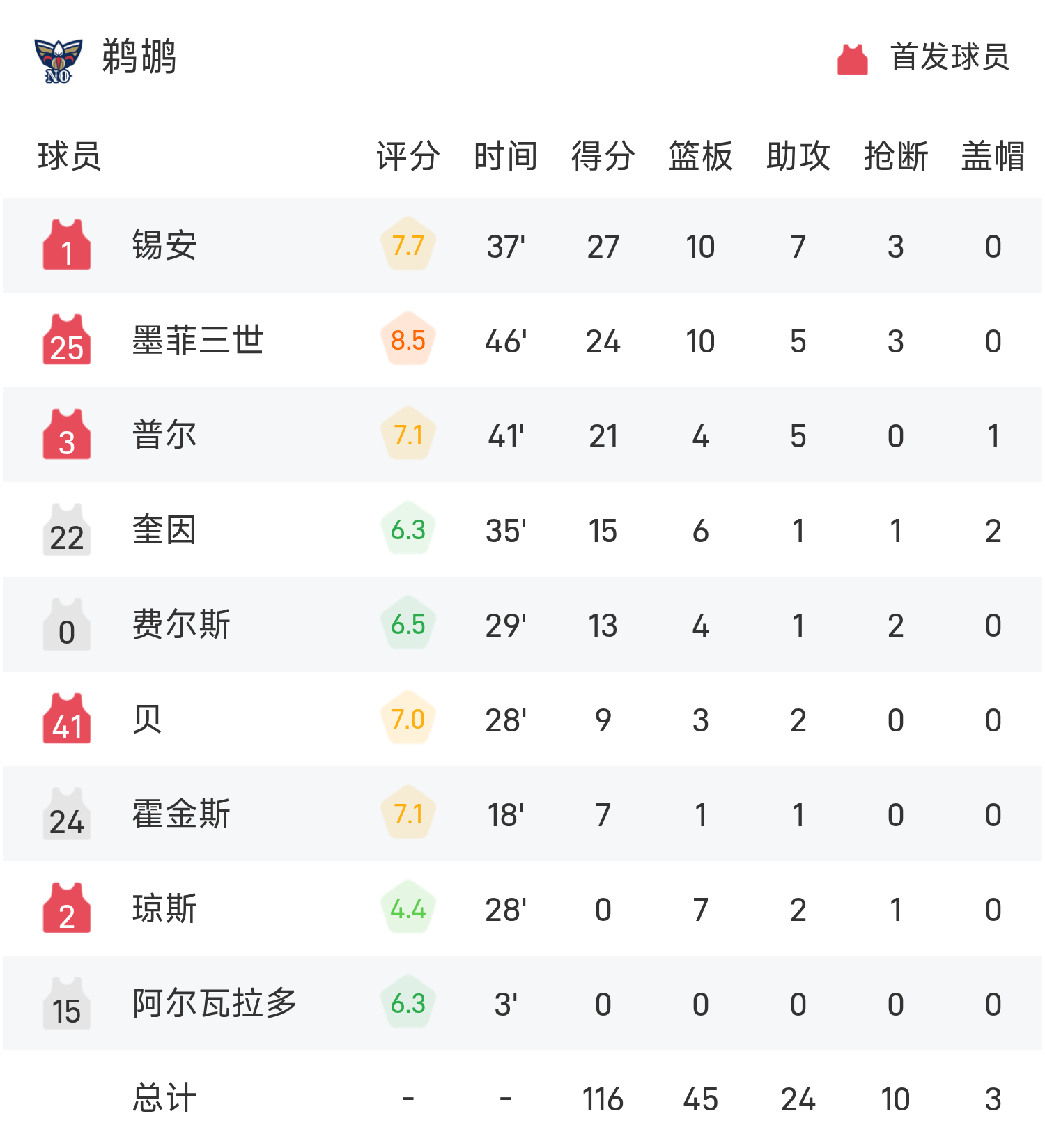 防守端表现亮眼