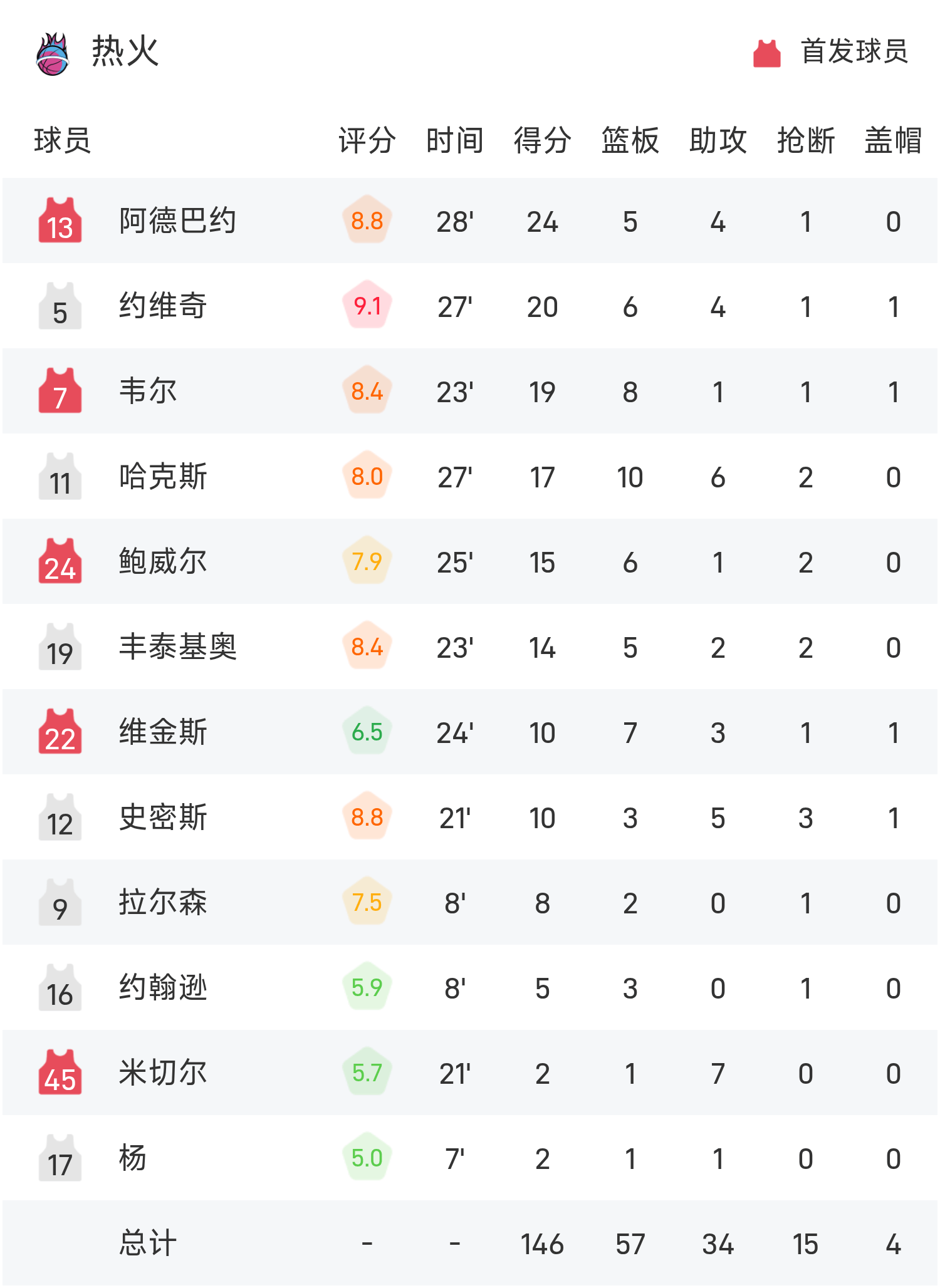 NBA战报:阿德巴约24分,热火146-114狂胜灰熊