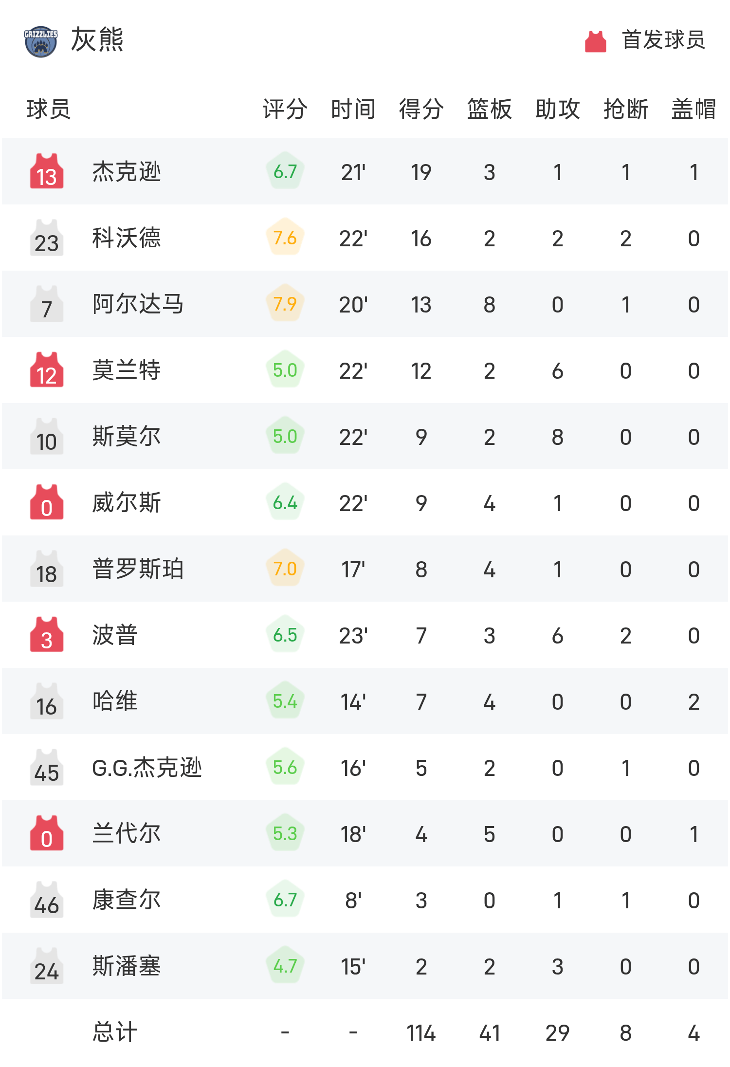 球员数据 查看更多