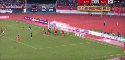 45+1’中国队后防倒脚差错,金容鹤错失良机