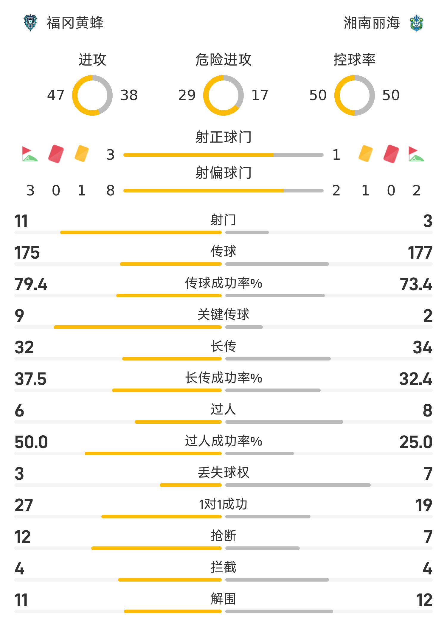 日职联半场:暴雨侵袭,福冈黄蜂0-0湘南丽海