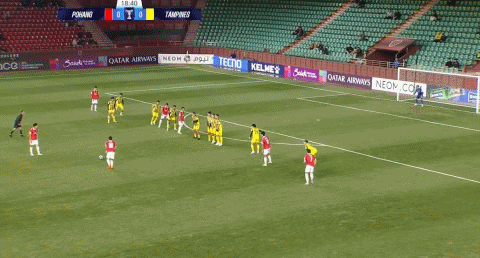 87’赵尚赫跟进射门破门,浦项铁人扳平赛果分,暂1-1淡滨尼流浪者